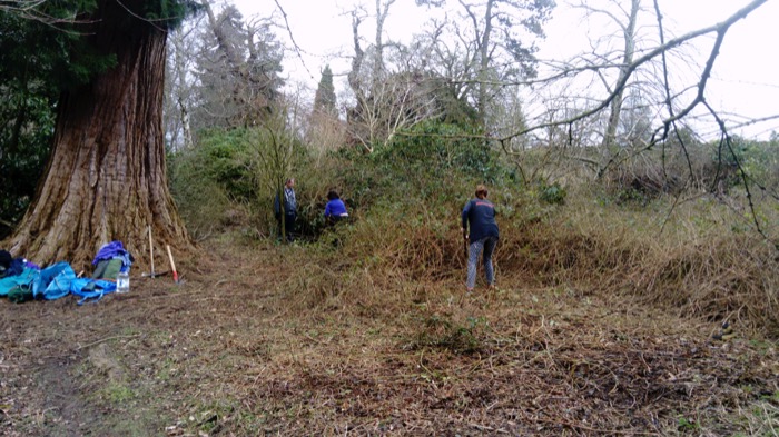We got loads of clearing done, adjusting an existing path to help protect the roots of a giant redwood tree and help keep the bramble at bay. There was also the completion of a new pathway, where we discovered the remaining steps for the donkey path and created better access through the overgrown laurel.